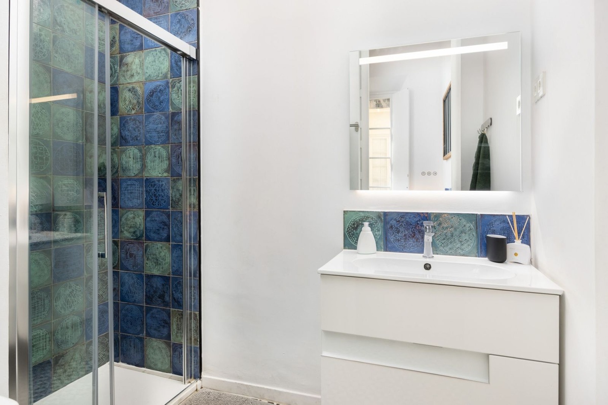 Impressive 4.2-meter-high ceilings with exposed beams, 3-meter doors, and original 19th-century tiles anchor a high-end renovation that honors the building’s heritage while enhancing everyday comfort. The spa-style bathrooms offer generous dimensions and rain-effect showers; central air conditioning serves the entire residence. The versatile layout allows for an independent studio or three-bedroom apartment, at the moment, it's functioning as an Airbnb, making this ideal for guests or additional income as a short-term rental.