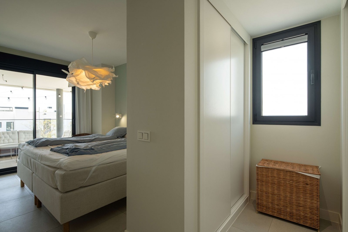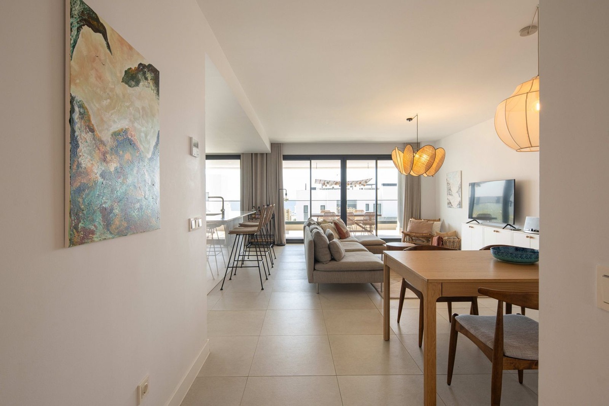The apartment itself offers breathtaking sea views and features 4 bedrooms, 112 m² of living space, and a 43 m² terrace with options for both sun and shade throughout the day, due to its south, southeast, and west-facing orientation. From the west-facing part of the terrace, you can enjoy views of the pool area.