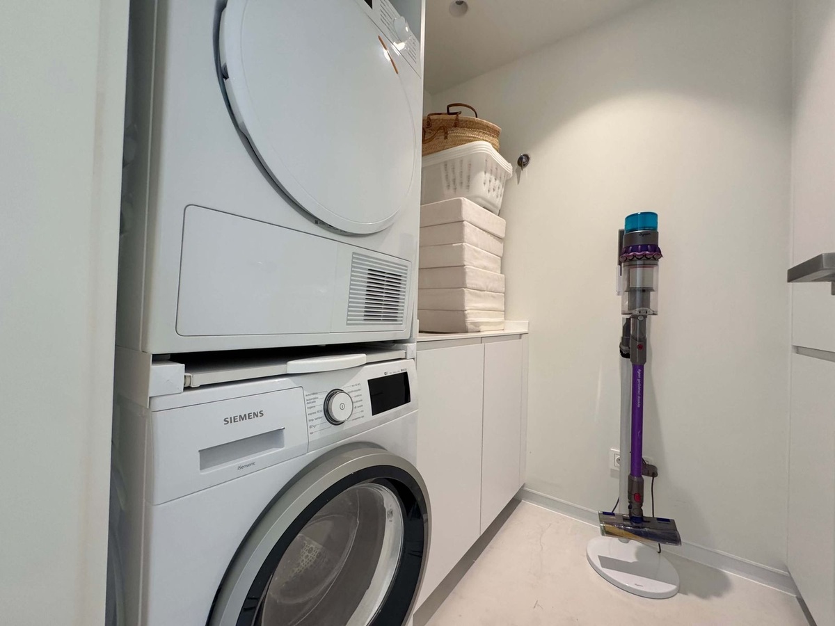 The apartment includes two underground parking spaces and a generous storage room, making it highly practical for both residential living and investment purposes.