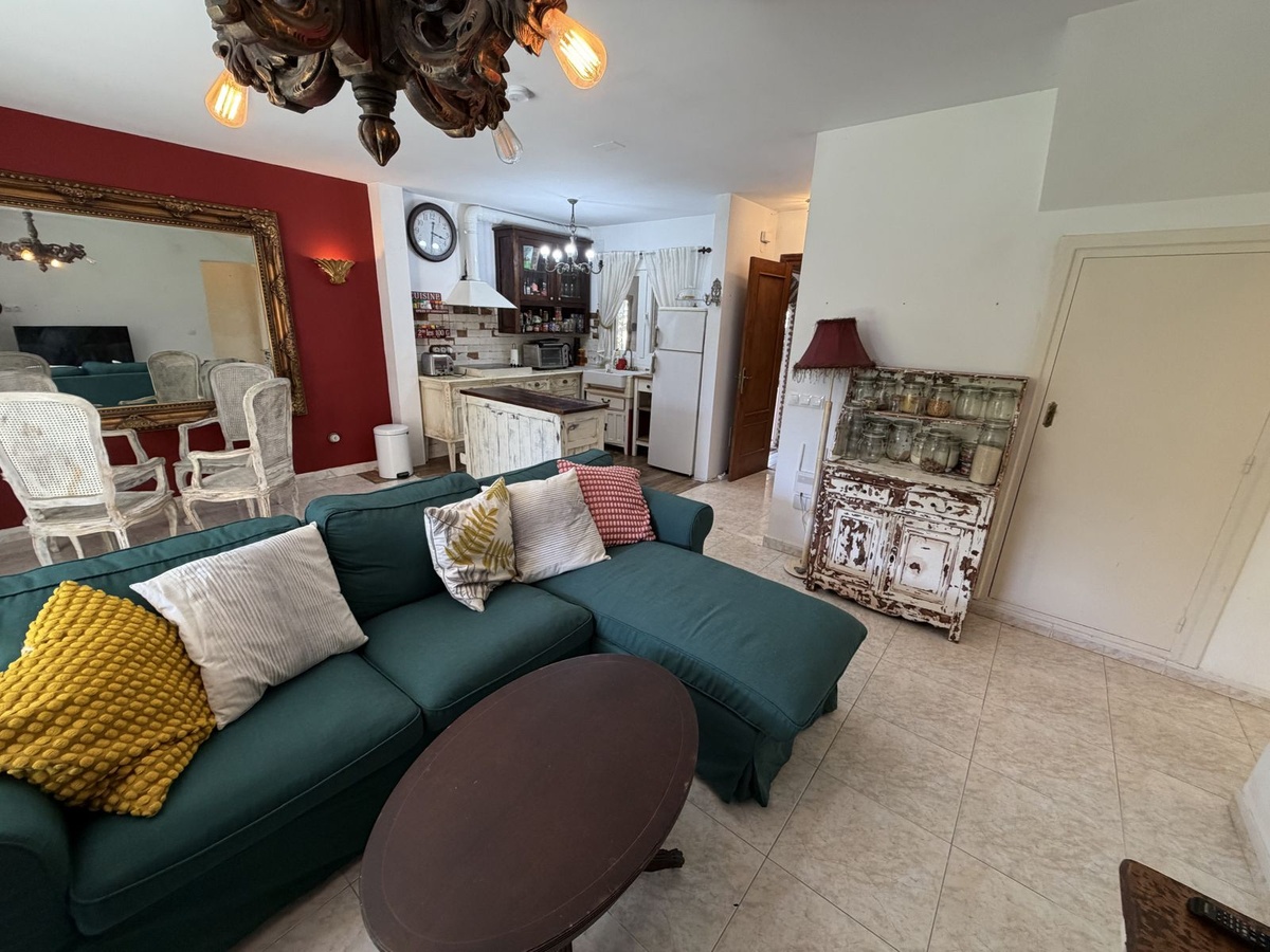 The property is arranged over two levels and offers three terraces distributed across both floors. It currently features two bedrooms, with the option to convert it into a three-bedroom home. Each level is configured as an independent unit, including one bedroom, one bathroom and a kitchen on both the ground and upper floors; however, the house can easily be renovated into a single, unified property. The spacious living room provides direct access to the terrace and garden, ground floor bathroom has been newly renovated. This home gives you the freedom to redesign and renovate the interior according to your personal preferences.