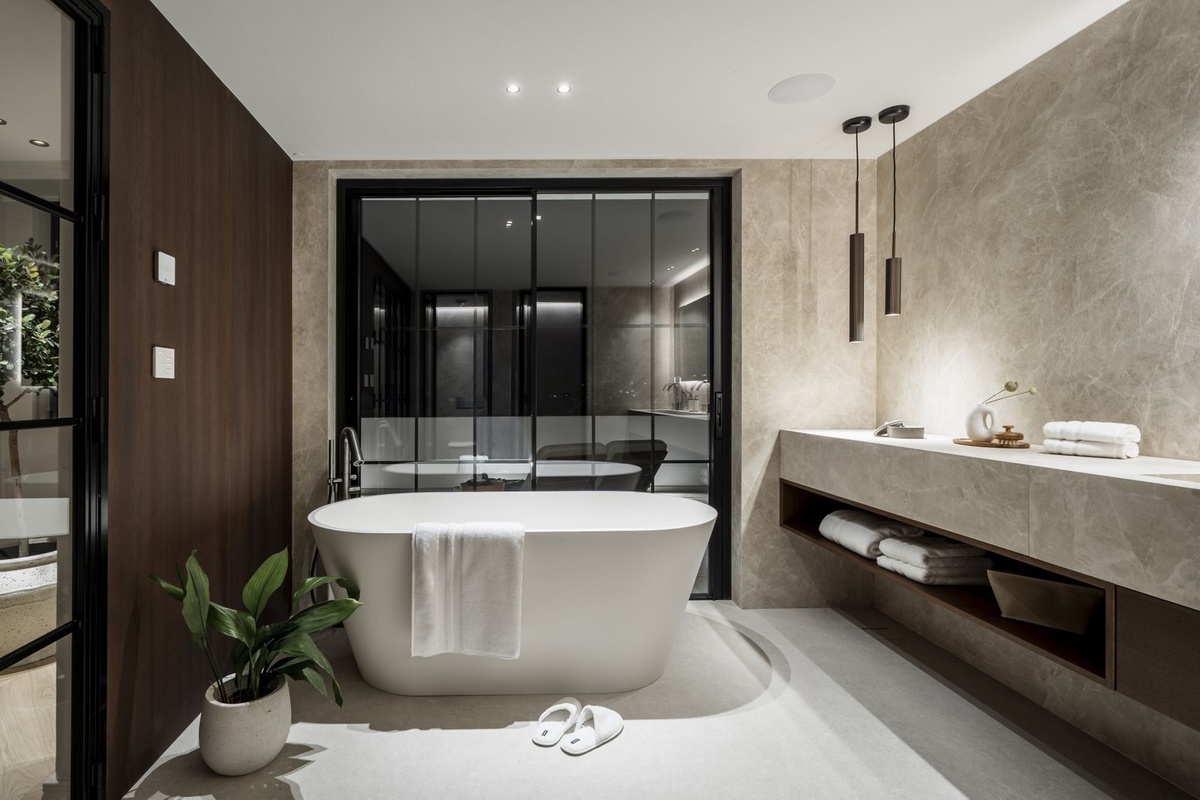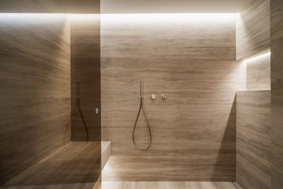 Inside, the home is defined by an elegant selection of materials, including Chevron wooden flooring that brings warmth and sophistication to every space. The Danespan kitchen combines clean design with functionality, creating a welcoming focal point for daily living and entertaining. The villa offers five spacious bedrooms, thoughtfully distributed to ensure comfort for family and guests. The wellness area features an indoor pool, sauna, and steam room, creating a private spa experience within the home.