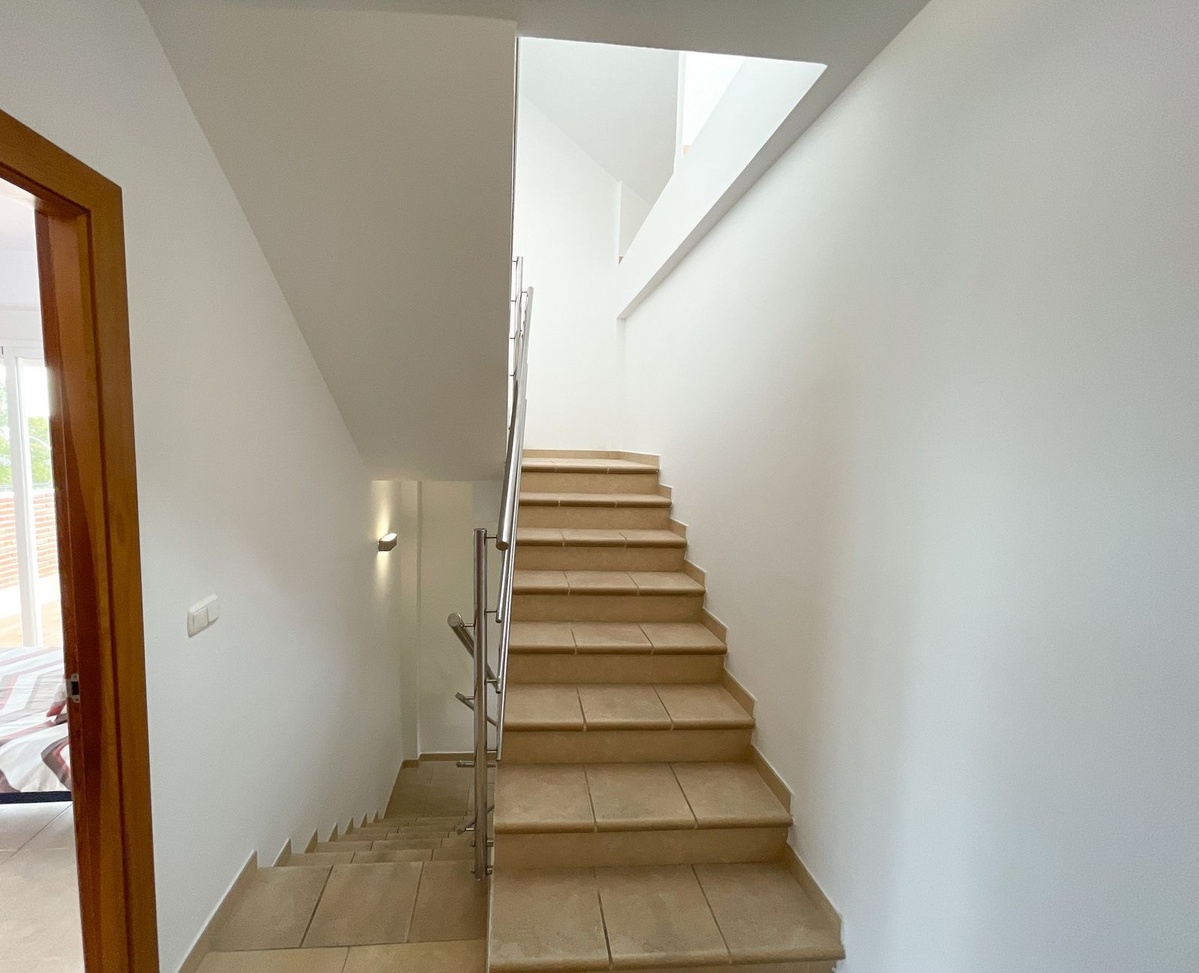 There is a toilet for the pool area, as well as an additional guest toilet inside the living room. The spacious and functional kitchen has direct access to another terrace, ideal for everyday use.