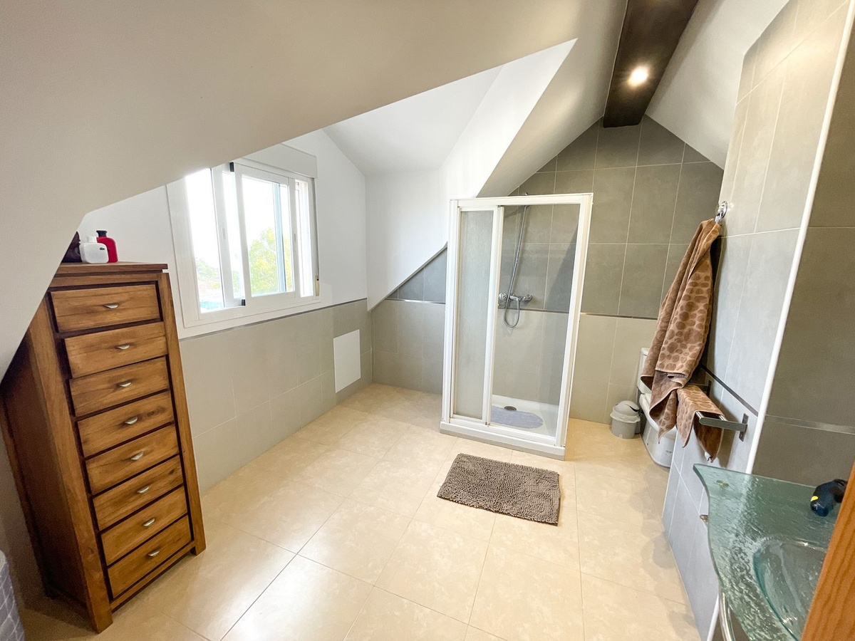 The top floor houses the very spacious attic-style master bedroom, bright and comfortable, with a private en-suite bathroom, providing a peaceful and private retreat.