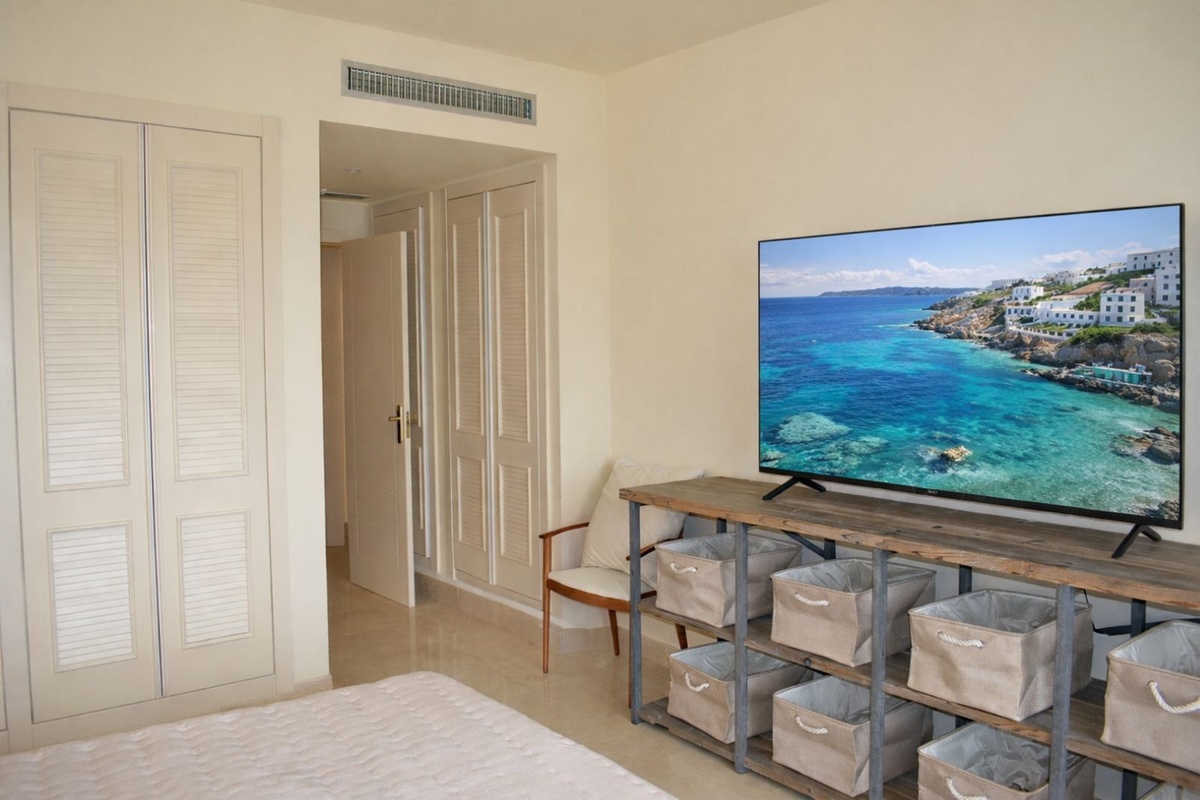 The property has been completely refurbished and tastefully decorated, featuring brand-new furniture and modern appliances throughout. With a south-facing orientation, the apartment enjoys abundant natural light and uninterrupted open sea views.