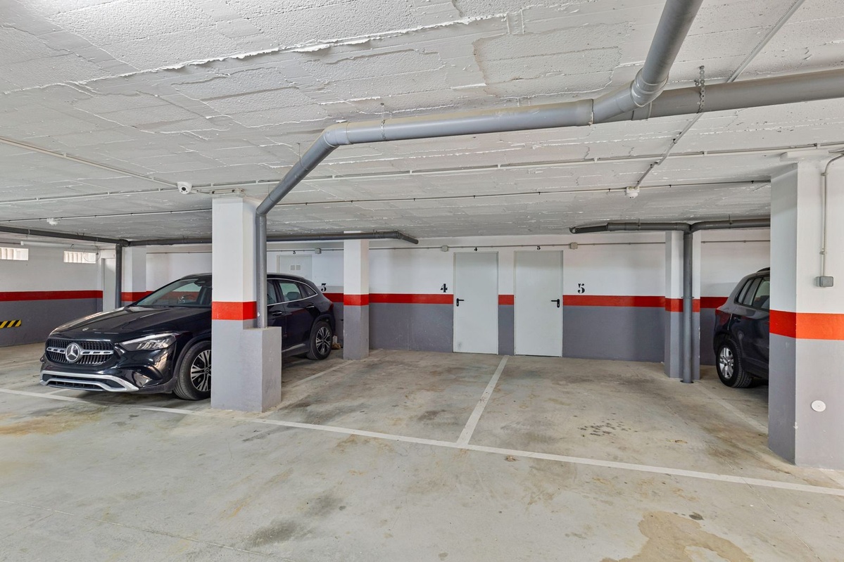 On the entrance floor of the building there are two parking spaces and a storage room. There is a direct elevator connection from the garage floor to your own floor and there are not a single step on the way, so the apartment is also excellently suitable for people with reduced mobility.The housing association has a swimming pool.