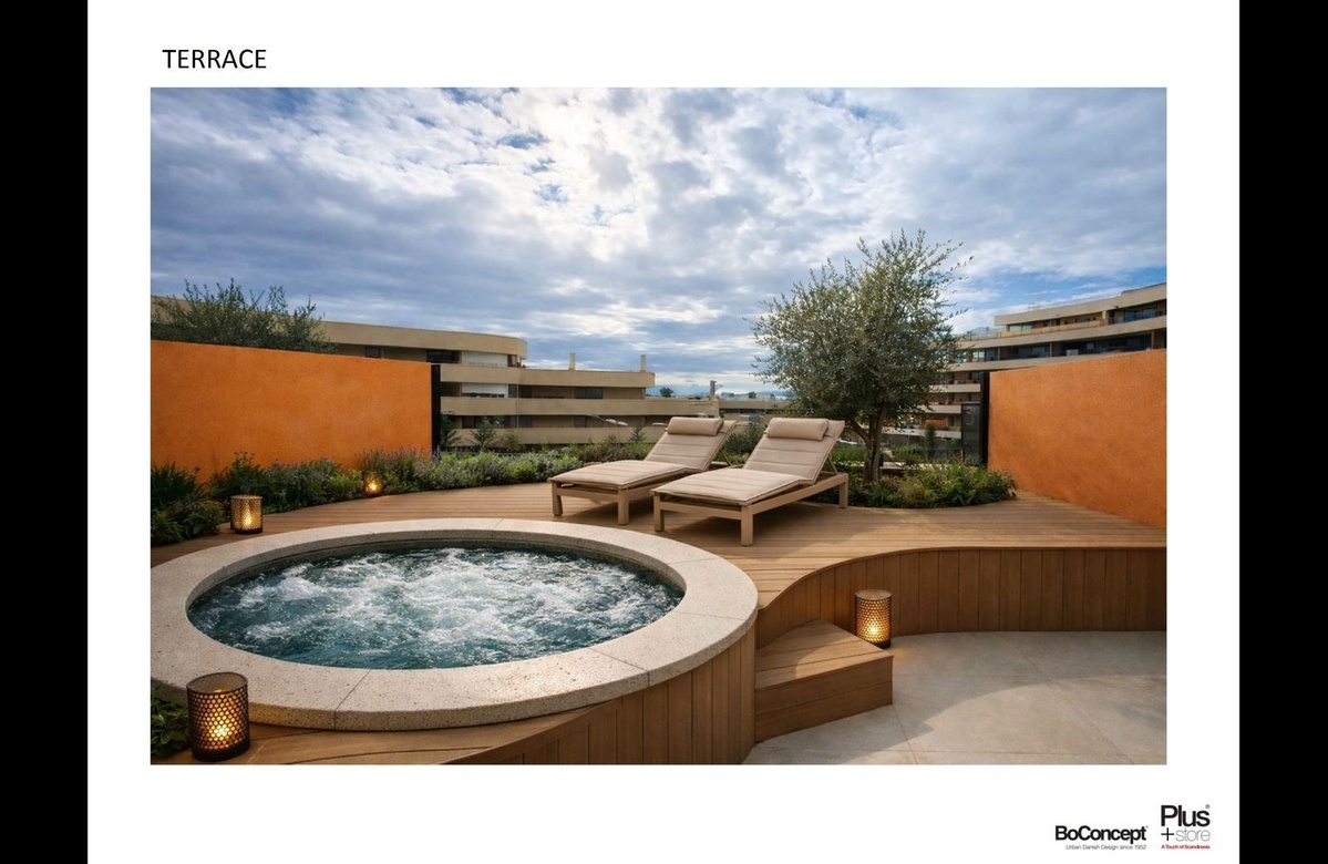 Расширенная жилая зона естественным образом перетекает на боковую террасу со стеклом во всю высоту, открывая средиземноморские виды с разных сторон и создавая исключительную атмосферу жизни в помещении и на открытом воздухе.