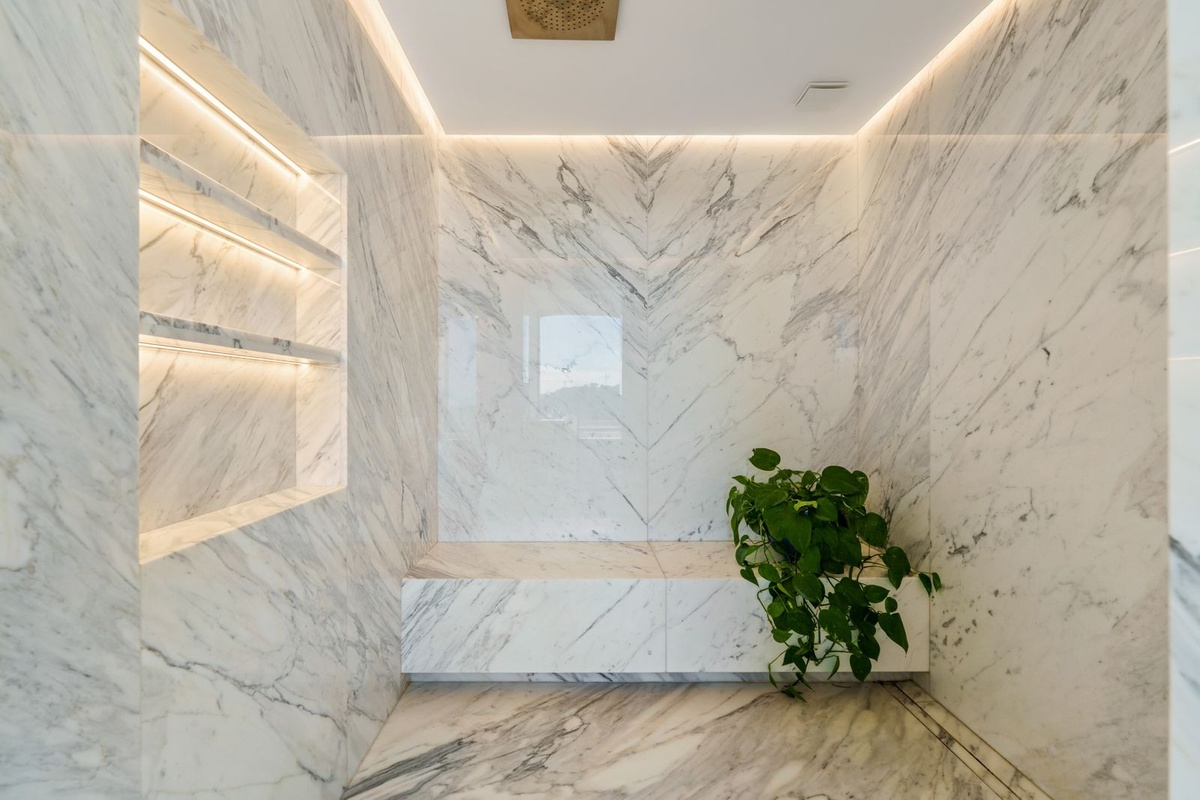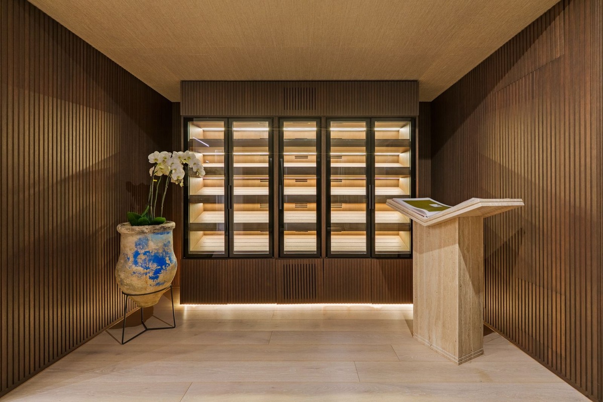 Большие проемы плавно соединяют интерьеры с просторными террасами и пейзажным бассейном, позволяя легко объединить внутреннюю и внешнюю жизнь.Панорамные виды остаются неизменным центром внимания.