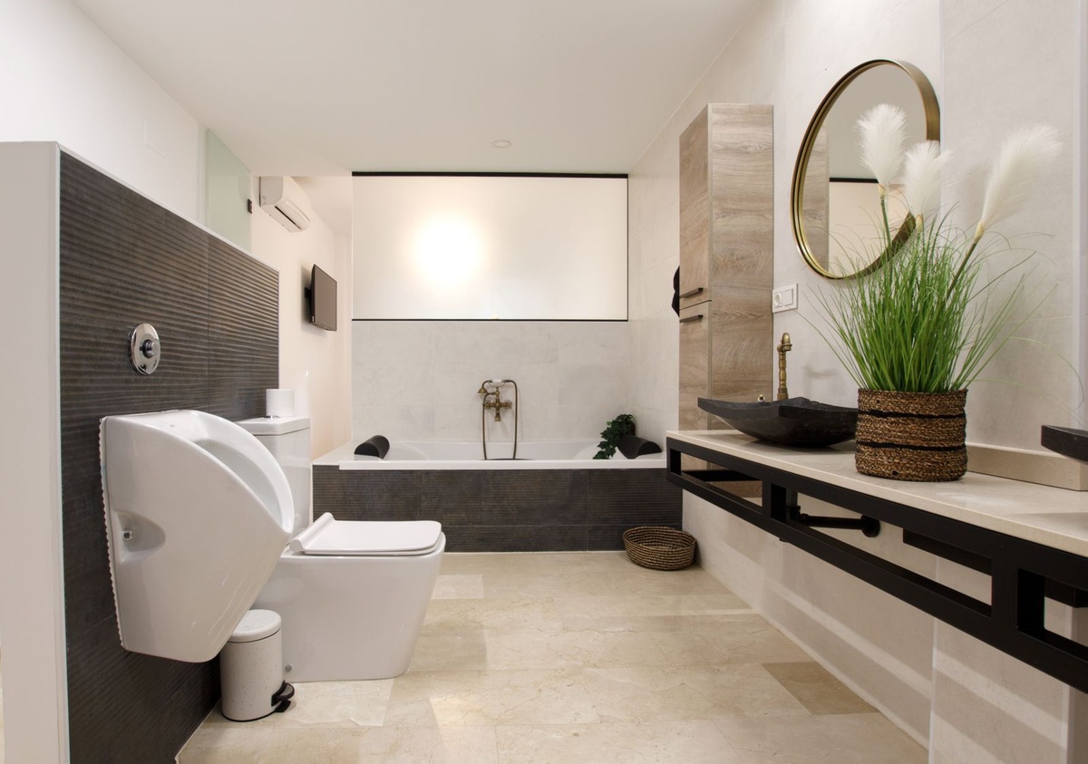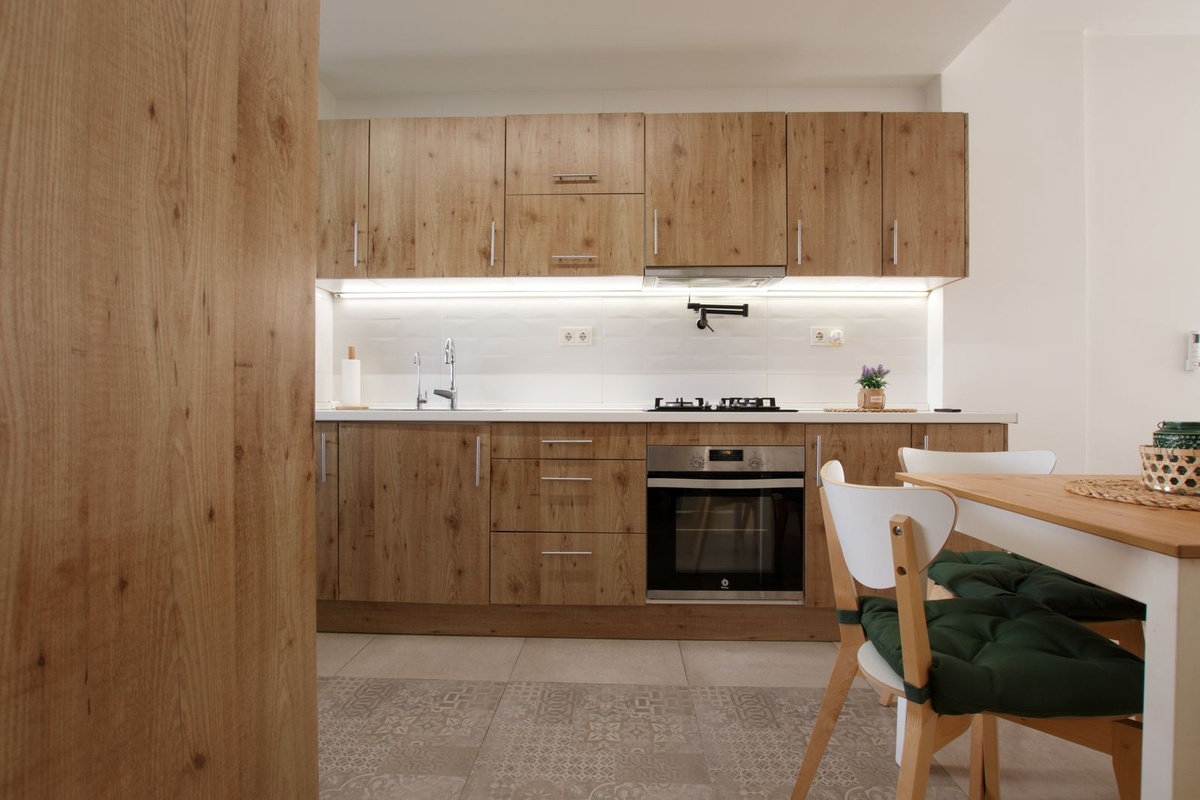 Квартира продается полностью меблированной, как показано на фотографиях (за исключением дивана, кровати и телевизора в гостиной).