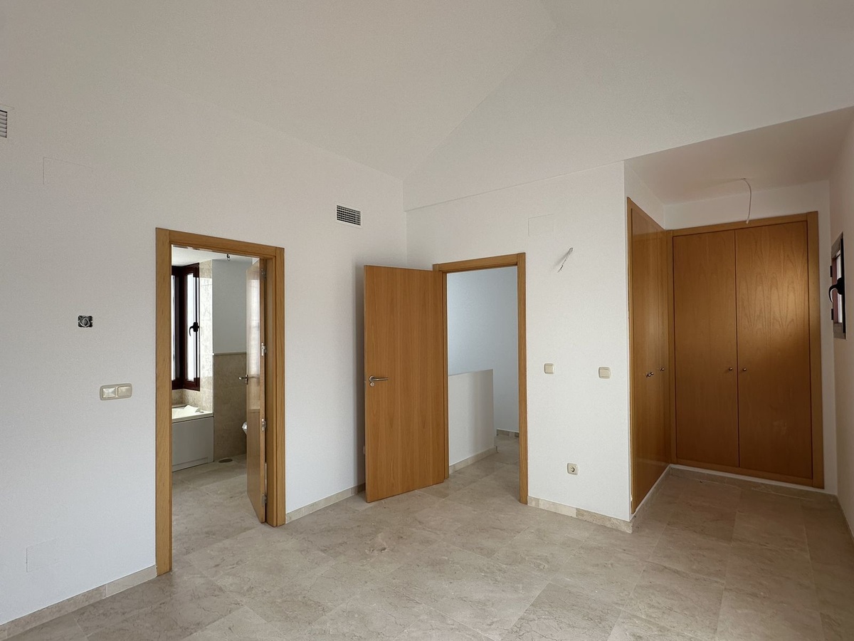 Дом состоит из трех этажей. На цокольном этаже находится большое универсальное помещение, которое можно использовать в качестве игровой комнаты, тренажерного зала или кладовой. На первом этаже находится светлая гостиная-столовая, оборудованная кухня, прачечная и гостевой туалет, а также крытая веранда или терраса, идеально подходящая для наслаждения климатом Коста-дель-Соль.