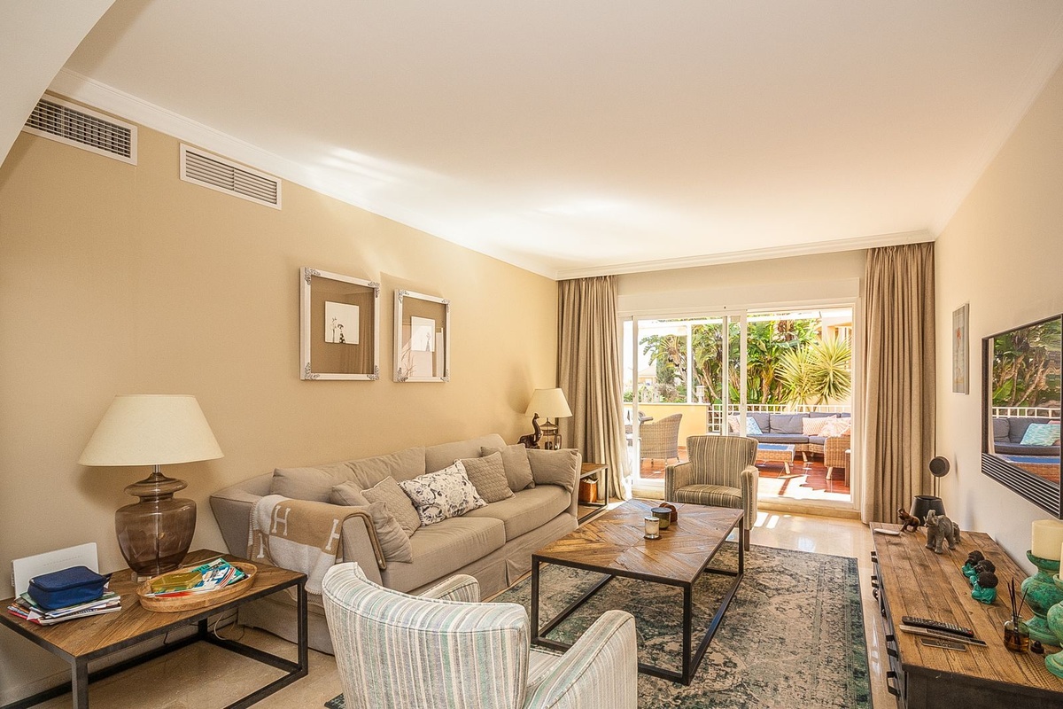 Откройте для себя эту исключительную квартиру с 3 спальнями на первом этаже, выставленную на продажу в Эльвирии, Восточная Марбелья, расположенную в престижной урбанизации Лос-Хардинес-де-Санта-Мария-Гольф. Предлагая просторное внутреннее пространство, отличную жизнь на свежем воздухе и отличное расположение недалеко от удобств и пляжа, этот объект идеально подходит в качестве постоянного места жительства, дома для отдыха или востребованной инвестиции в аренду на Коста-дель-Соль.