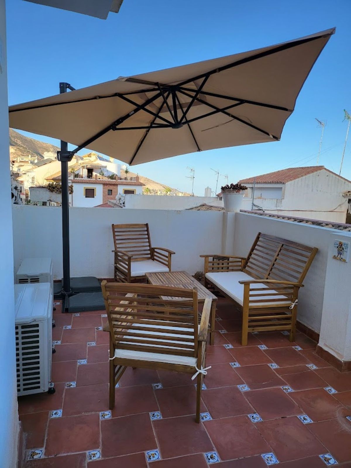 In the heart of the home is a bright kitchen, fitted with new high-quality appliances and opening directly onto a private patio — perfect for morning coffee or relaxed outdoor dining. Upstairs, a generous rooftop terrace offers stunning views and additional outdoor living space to enjoy the Mediterranean climate and village surroundings.