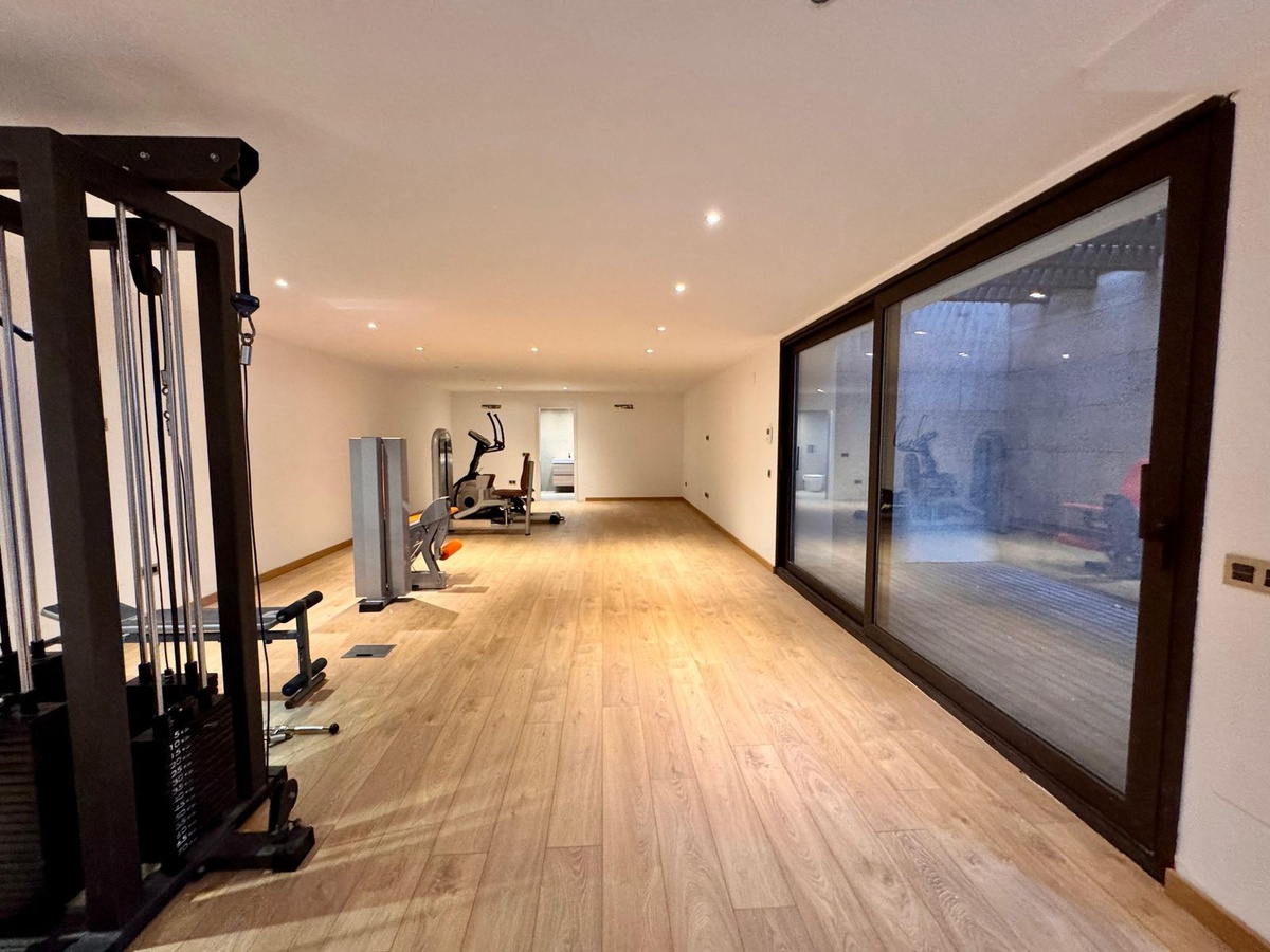 The basement level includes a private gym and another full bathroom, offering a perfect space for wellness and exercise.