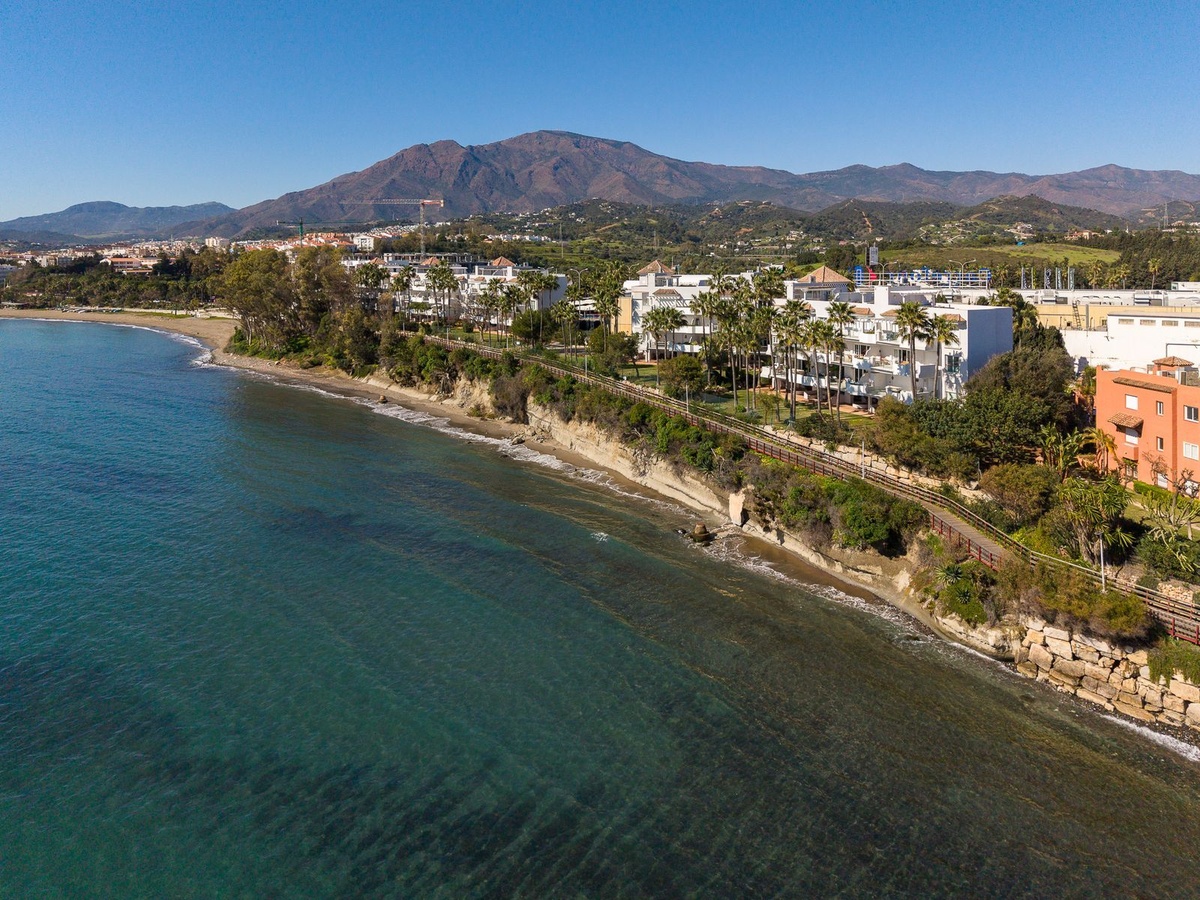 The location is simply unbeatable. With direct access from the garden to the promenade and beach, the Mediterranean is quite literally at your doorstep. A shopping center is just a one-minute walk away, and a direct bus connection to Málaga Airport stops nearby. Meanwhile, Estepona’s charming old town, renowned for its cafés, restaurants, boutiques, and authentic Andalusian character, is only a short stroll away.