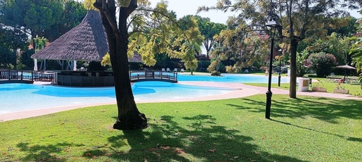 Lovely apartment with private garden, in Atalaya close to Diana Park. Groundfloor apartment located in a beautiful gated complex with swimming pool surr ...